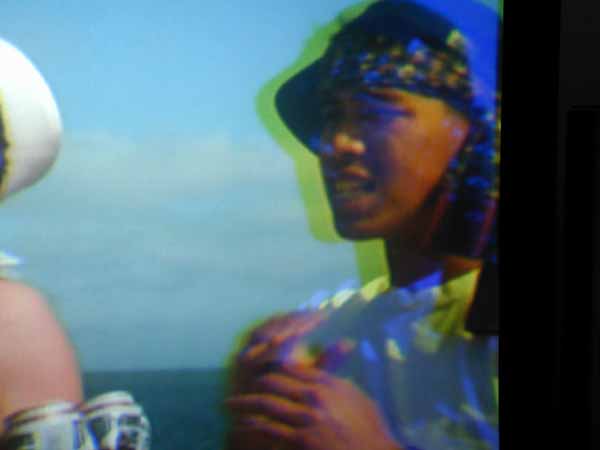 Sorry about the blurry and double picture, but my TV is on its last legs and is ready to give up its life. If you can't still figure it out, then here is where he gets his credits on the big screen ---------->>>